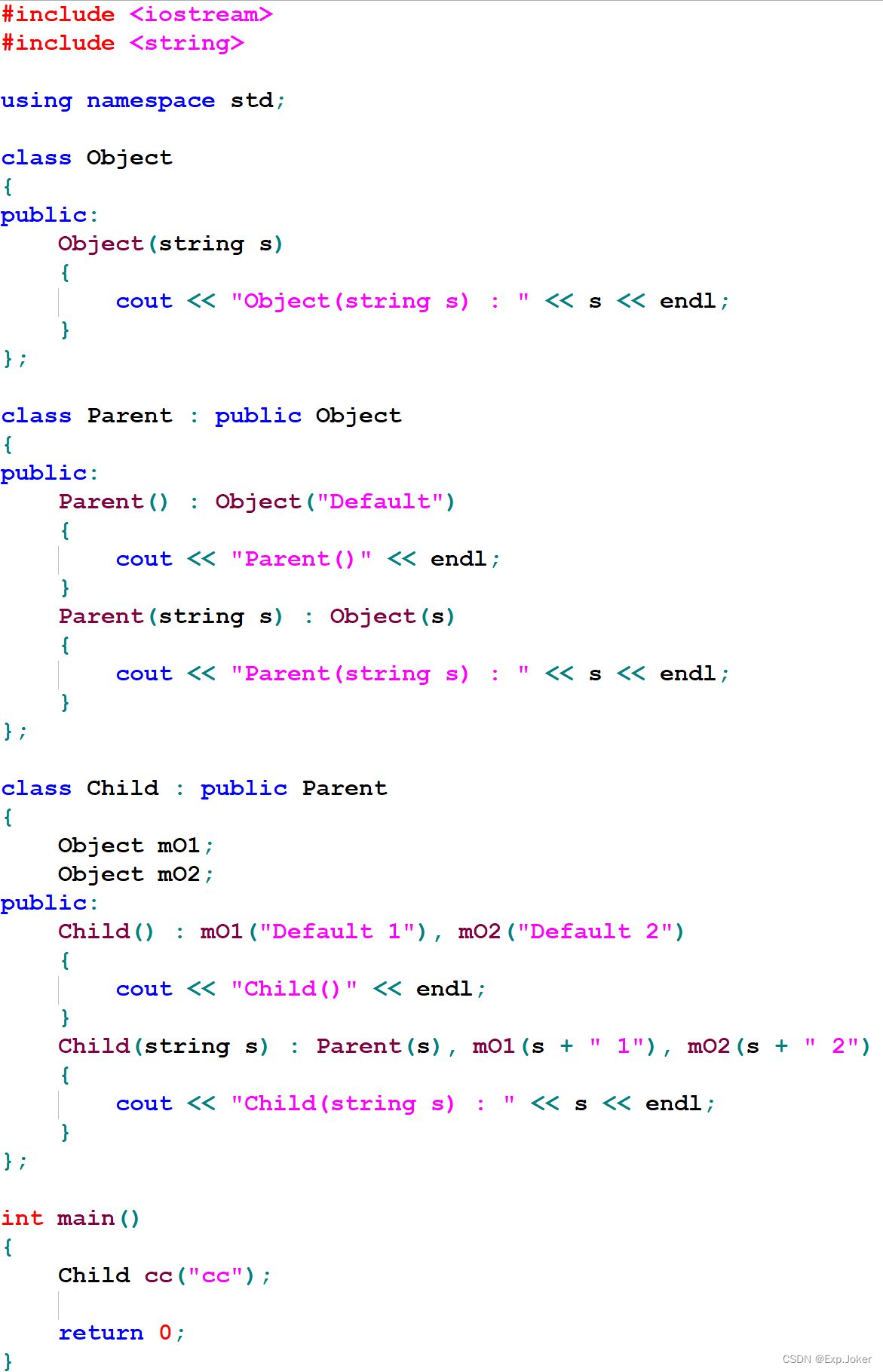 - 先执行父类构造函数然后执行成员的构造函数