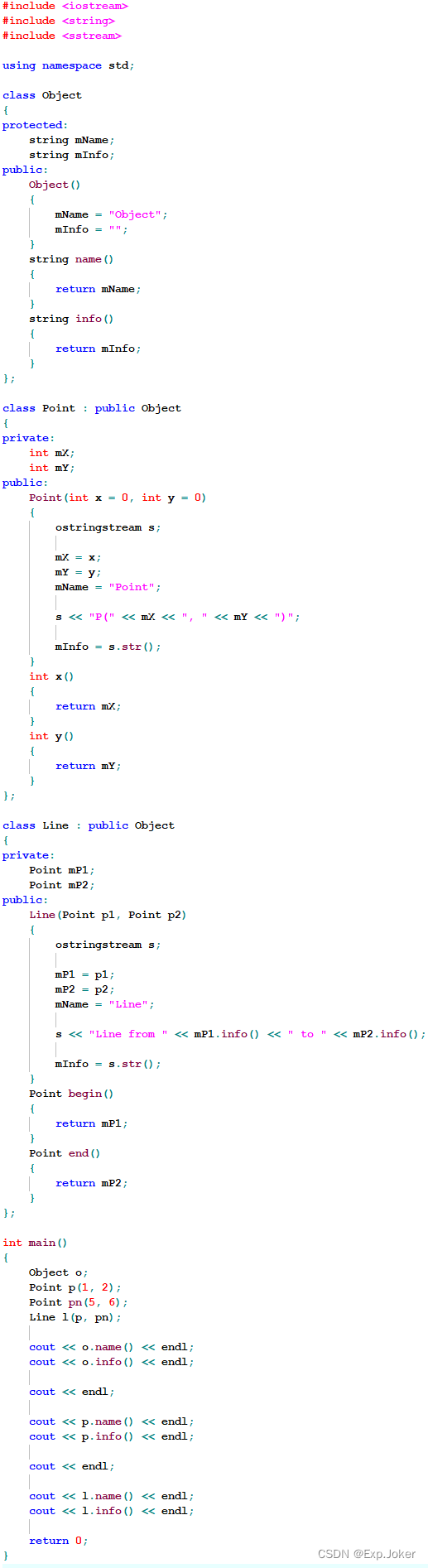 Point和Line继承Object,Line由Point组合