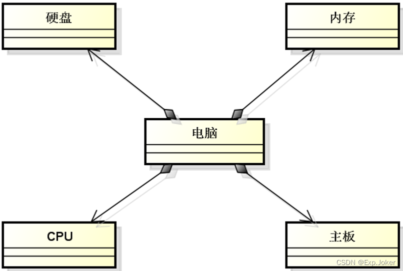 - 组合关系:整体与部分的关系