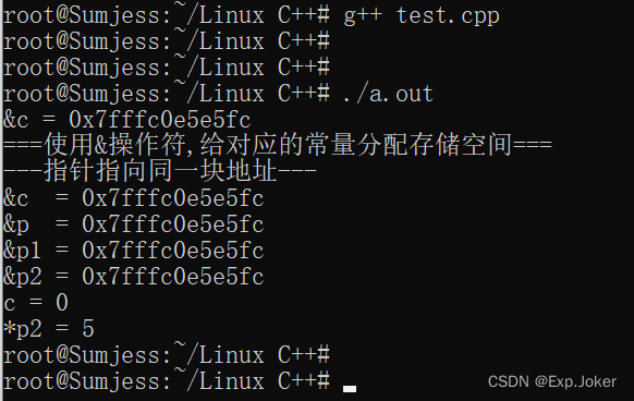 - 当使用&操作符对const常量取地址