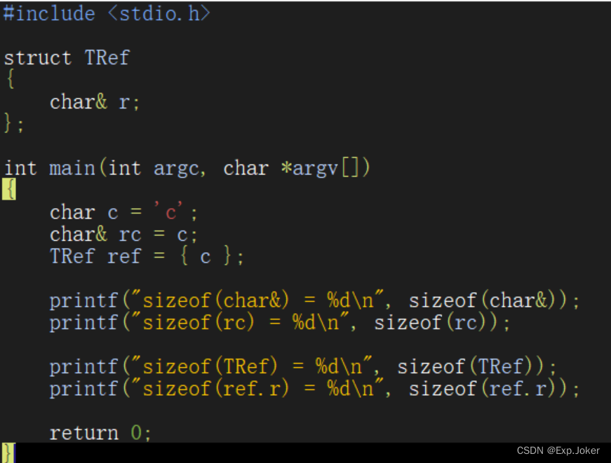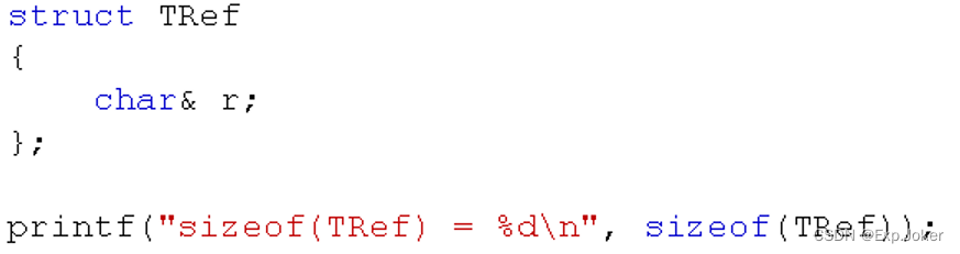 - C++编译器在编译过程中用指针常量作为引用的内部实现,因此引用所占用的空间大小与指针相同。