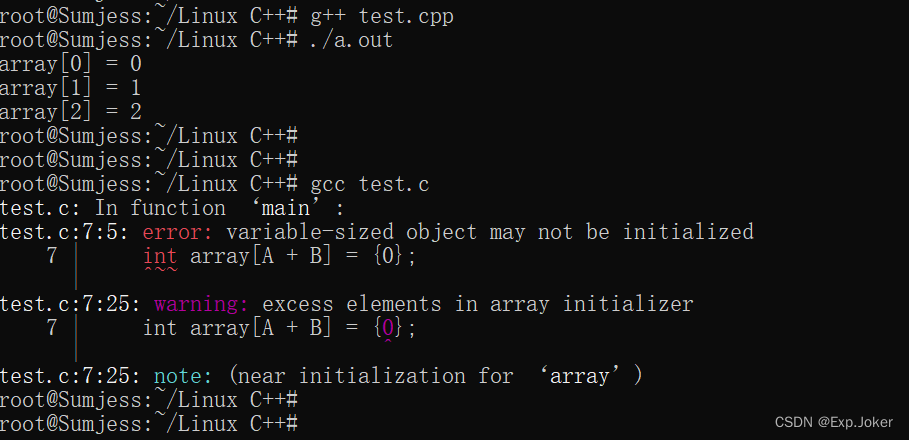 - C 编译器下报错,对于编译器而言,变量A和B在编译阶段并不知道具体的数值,而是等到运行时才知道。