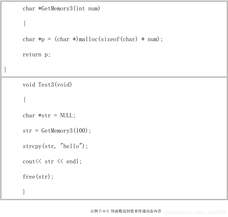 2、用函数返回值来传递动态内存