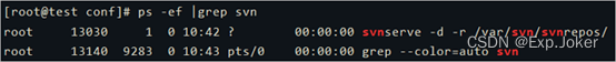 8. 运行命令ps -ef |grep svn查看SVN服务是否开启。
